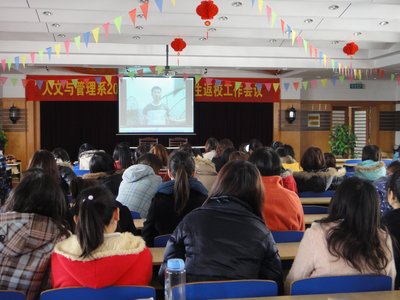 3月7日上午,人文与管理系2007级组织刚刚返校的法学、公管、信管学生,在北校区实验楼七层报告厅观看了安徽省优秀大学生村官事迹专题宣传片《青春在田野里闪光》。