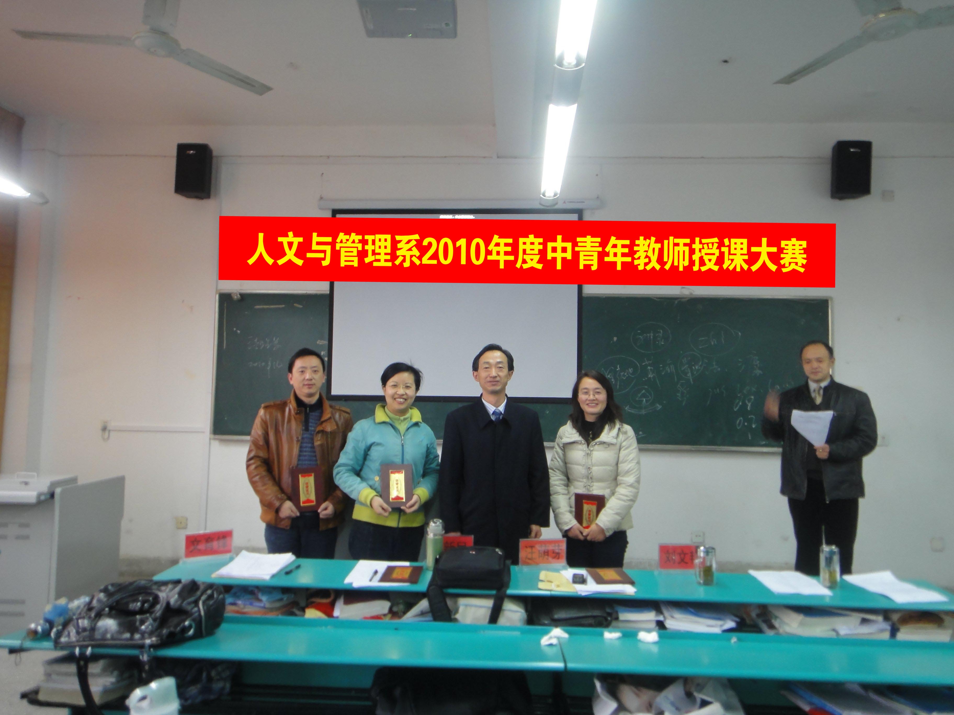 为了进一步加强中青年教师的队伍建设,不断提高中青年教师的业务素质和教学水平,更好地挖掘其教学潜能,促进教师间的相互学习和提高, 12月12日,人文与管理系在西教307教室举行了2010年度中青年教师讲课比赛。系领导阮笑芳书记、胡鸿主任、刘华副书记、王军副主任出席比赛。教务处处长王丽应邀莅临指导,校办主任方国庆副教授、教务处副处长刘文艳副教授、预防教研室文育锋副教授、本系心理教研室主任刘新民教授、生理与神经生物学教研室主任汪萌芽教授等应邀担任评委。比赛的上、下午场分别由胡鸿主任、王军副主任主持。