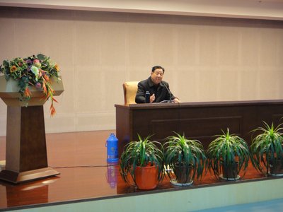 靳宽华老师首先以幽默、风趣的语言介绍了人文素养的涵义和中华民族文化的博大底蕴,强调了在现实生活中提高“人文精神”品位的重要性,指出了素质教育的重要意义,并要求我系学生做“四有”新人,努力成为德、智、体、美全面发展的当代大学生。接着他又以鲜明的事例介绍了实现人文素质教育的途径,要求大家学会关心、理解、宽容、尊重他人并负有责任心和同情心。靳老师精彩幽默的演讲博得同学们的热烈掌声。