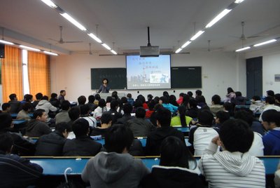 靳宽华老师向大家详细介绍了世博会的发展历史,阐述了世博会的举办意义和目前上海世博会的筹备情况。指出,世博会不仅是商品的博览会、经济的促进会,更是见证人类精神文明发展的盛会;不仅是展示各国传统文化与魅力形象的大舞台,更是诠释着进步、融合、创新等核心价值的交流平台。讲座深入浅出,旁征博引,生动精彩,会场不时地响起热烈的掌声。