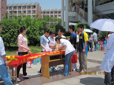 为了纪念“5.12”四川汶川地震两周年,5月12日中午,人文管理系2008级团总支、学生会在学生食堂一楼门口开展防灾减灾保驾护航宣传活动,号召大家增强防灾减灾意识,学习和宣传相关科普知识。