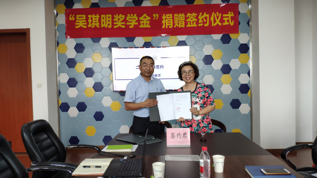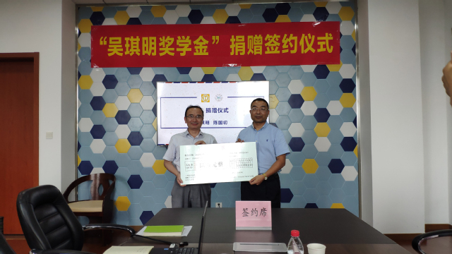 捐赠仪式上,校友会秘书长林敏芝代表学校与吴琪明校友共同签署捐赠协议。kaiyun登录中国入口登录院长陈国初代表学院接受了吴琪明校友的捐赠。(苗雨婷 潘娜)
