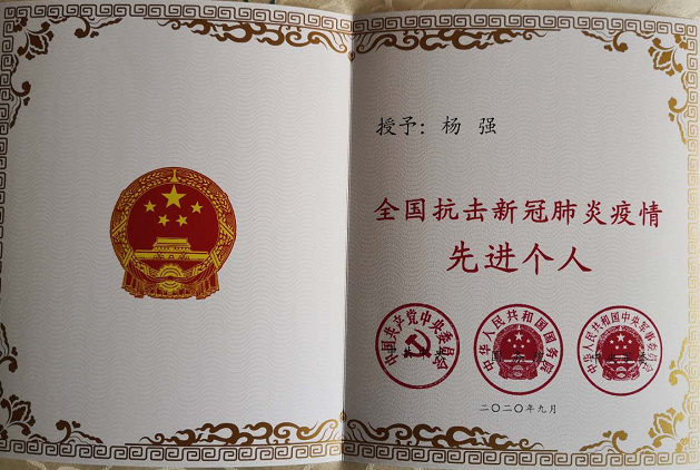 kaiyun官网原工电8677班校友、现上海市交通委员会执法总队二十四大队大队长杨强荣获全国抗击新冠肺炎疫情先进个人。