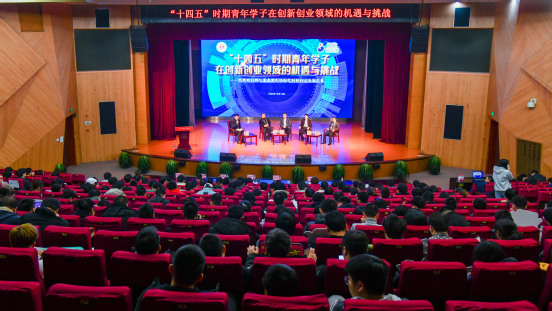 现场氛围十分热烈。“十四五时期我国的发展将从高速发展转向高质量发展,青年创客们如何了解市场、了解行业的发展前沿?新的发展格局将给青年学子带来怎样的机遇与挑战?高校作为深人推进“大众创业、万众创新”的重要阵地,又应该如何培养大学生的创新创业能力?”四名校友企业家从自己的人生经历出发,细心耐心地一一回答了青年创客们最关心的问题:“一切的创造发明,创新创业其实都来自于实际,比如交通的十字路口如何实现智能化?这些小小的生活需求都是我们创造的动力来源。”“老师交给你的知识,但怎么样让知识变成智慧,变成能力?需要我们在现实中历练。”“创业不要急于求成,任何发展机会都是给有准备的人。要有终生学习的心态,微笑面对无法避免的痛苦。”“校企合作能带给学生创新创业的灵感,能提升学生提出问题和解决问题的能力。”