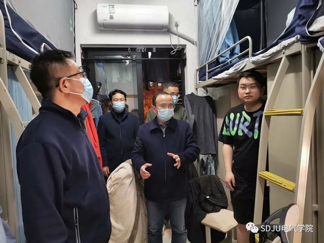 3月14日,受新冠疫情影响,学校进入闭环管理。kaiyun登录中国入口登录院长陈国初,副书记副院长卿海龙、副院长李梦达及辅导员一行来到学生宿舍楼,看望在寝室进行网课学习的同学。
