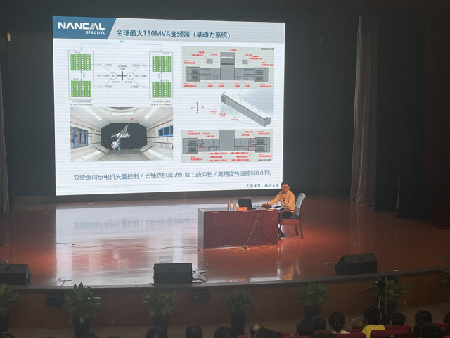接着,围绕大容量高压变频器关键技术,他介绍了所研制的“高温气冷堆主氦风机高压变频器”产品样机,该样机已通过国家级鉴定,具有自主知识产权,总体技术达到了国际先进水平;接着,他讲解了其主导完成的“高压大容量变频及电能质量控制系统关键技术与工程应用”项目,该项目已在西气东输、中俄东线等项目中成功应用,并填补了行业空白;其主导完成的中国第一套20辊不锈钢轧机变频器,也打破了国外垄断。讲座还分享了轴系扭振识别及主动抑制、控制系统冗余设计、高性能矢量控制等技术。