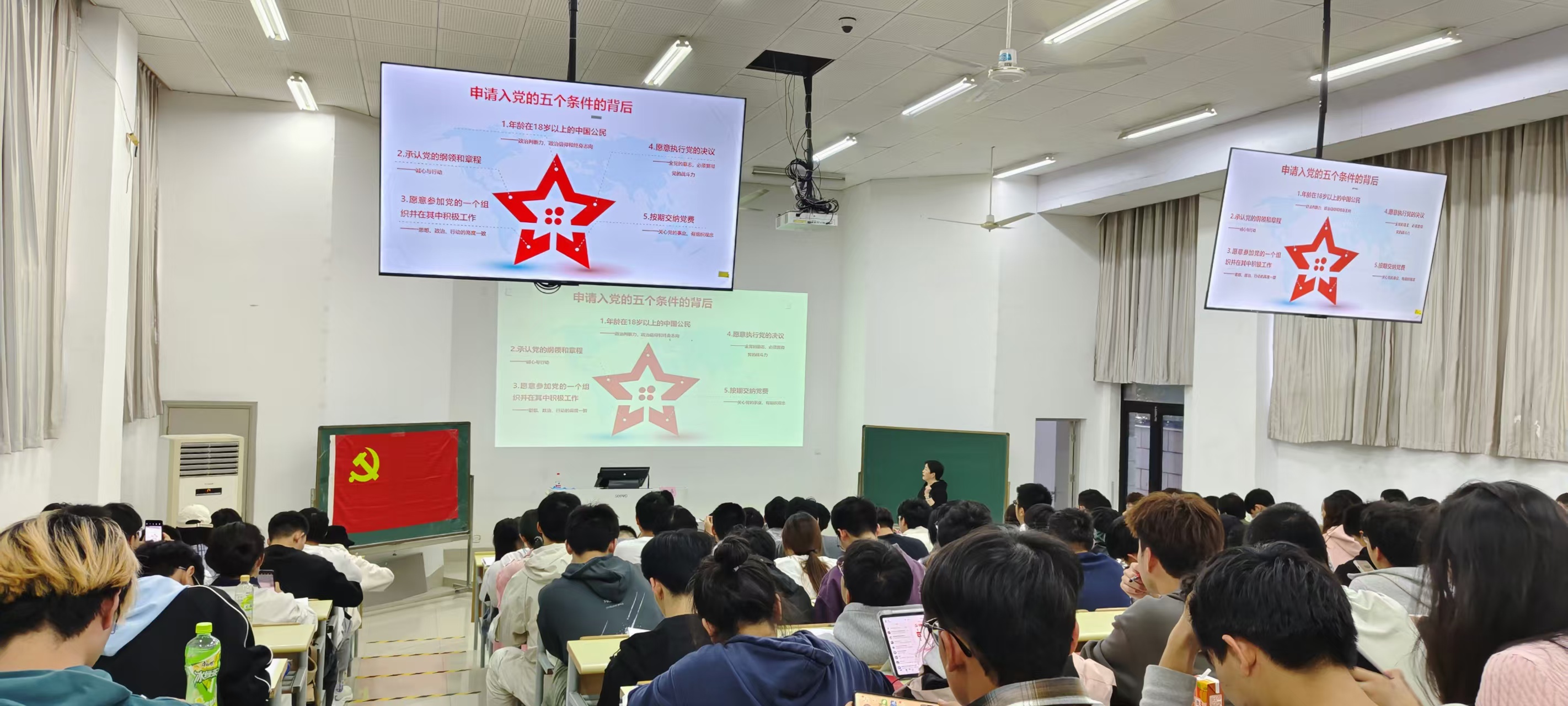 房晶书记首先从申请入党的五个基本条件背后的深层次涵义出发,阐明在年龄和成分、政治思想、组织上、纪律上和交纳党费的基本要求。接着详细讲述了共产党员的标准,要求大家以牢固树立共产主义信念、秉承全心全意为人民服务的宗旨、恪守永远是劳动人民的普通一员这一政治本色为标准,在学习生活工作中要时刻检视自身的不足。