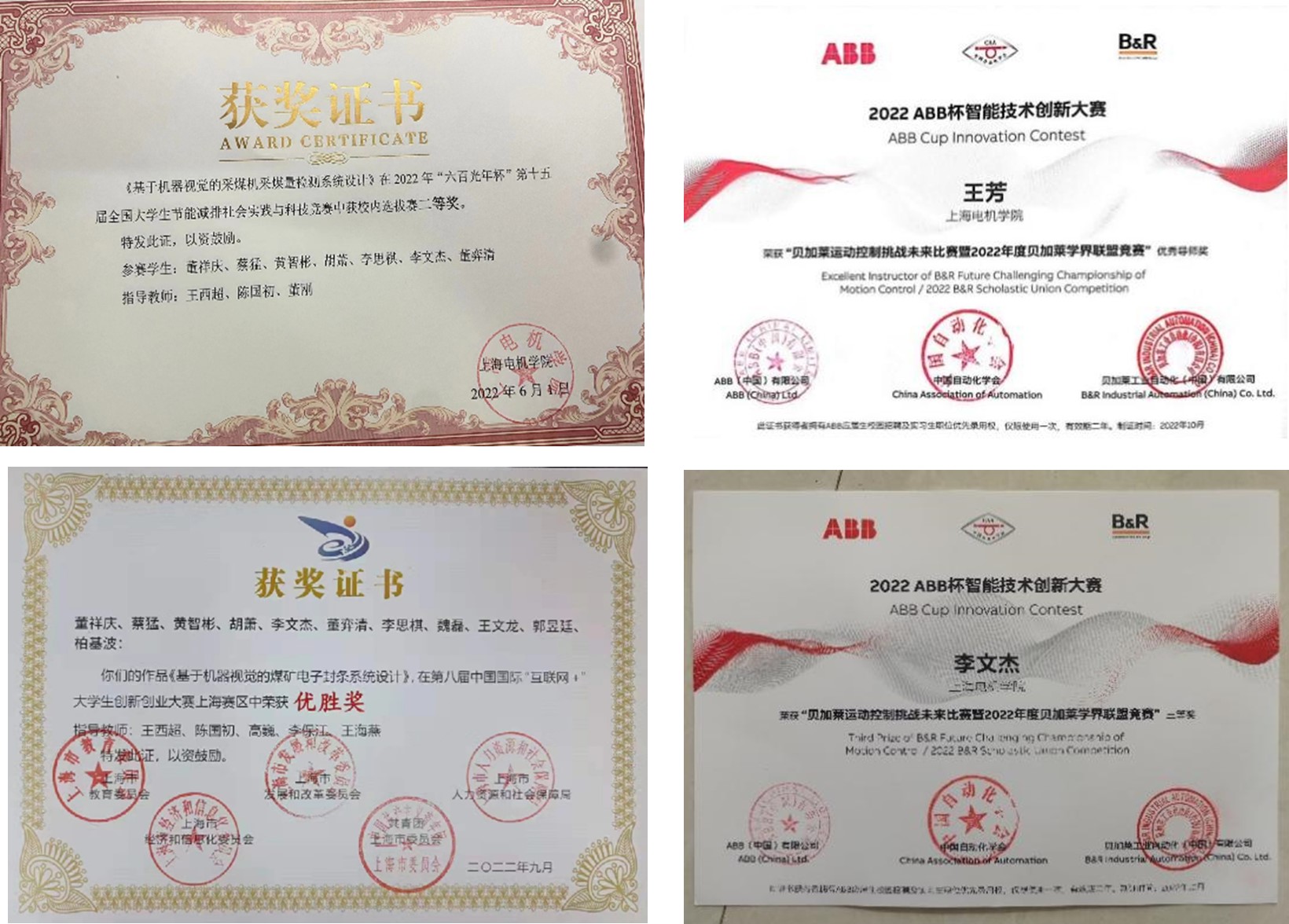 学生受益面广,能力提升明显,产生了一批优秀成果,如2018年上海市科创杯一等奖、2019年上海市职业技能大赛一等奖、ABB杯智能技术创新大赛暨贝加莱学界联盟竞赛2020年一等奖和2022年三等奖、第六届中国国际“互联网+”大学生创新创业大赛银奖、全国大学生数学建模竞赛三等奖等。获批上海市大学生科技创新活动计划资助项目100多项,2018-2024年期间大学生申请专利50多项。